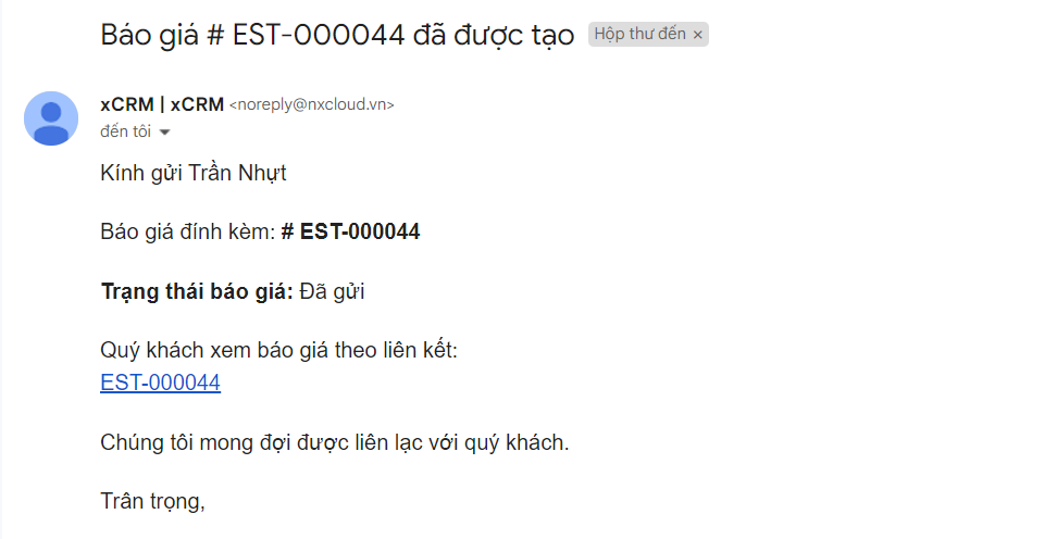 Sau khi nhận được email, khách hàng có thể click vào liên kết có trong email để mở báo giá ra kiểm tra