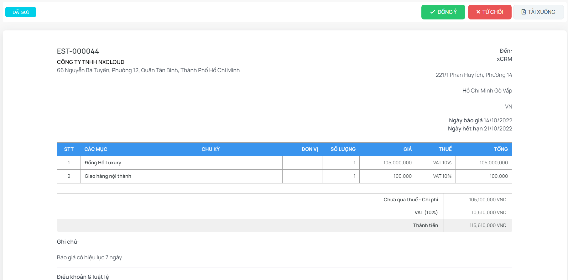 \-         Để tải bản báo giá dưới dạng pdf chọn vào nút Tải xuống.