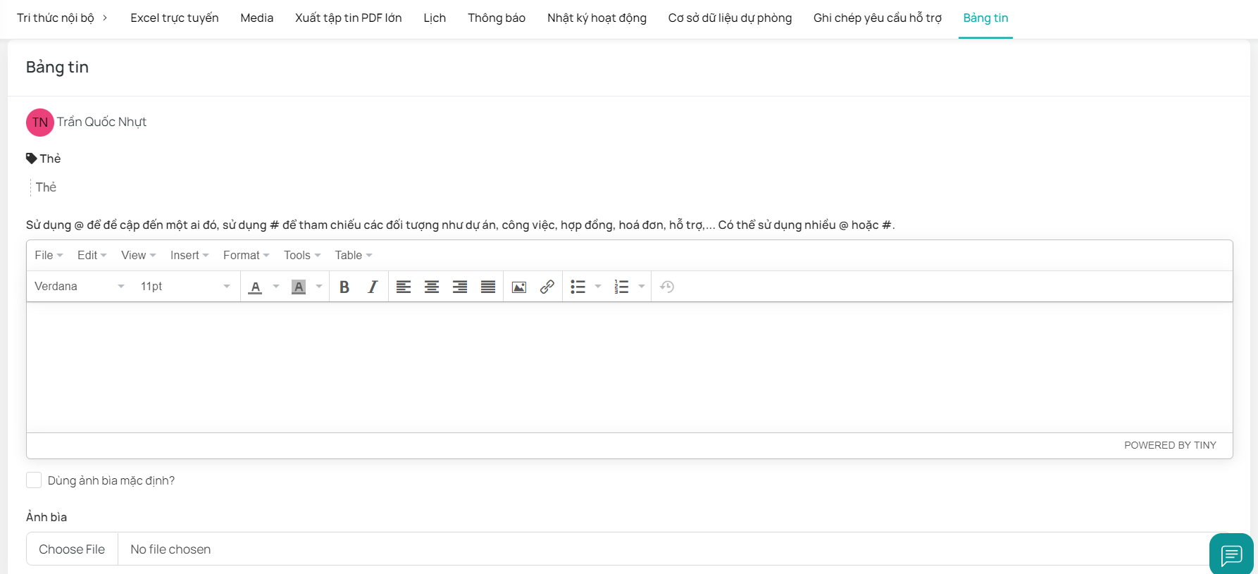 \-         Đăng thông báo tại đây, sử dụng @ để đề cập đến những người liên quan trong thông báo.